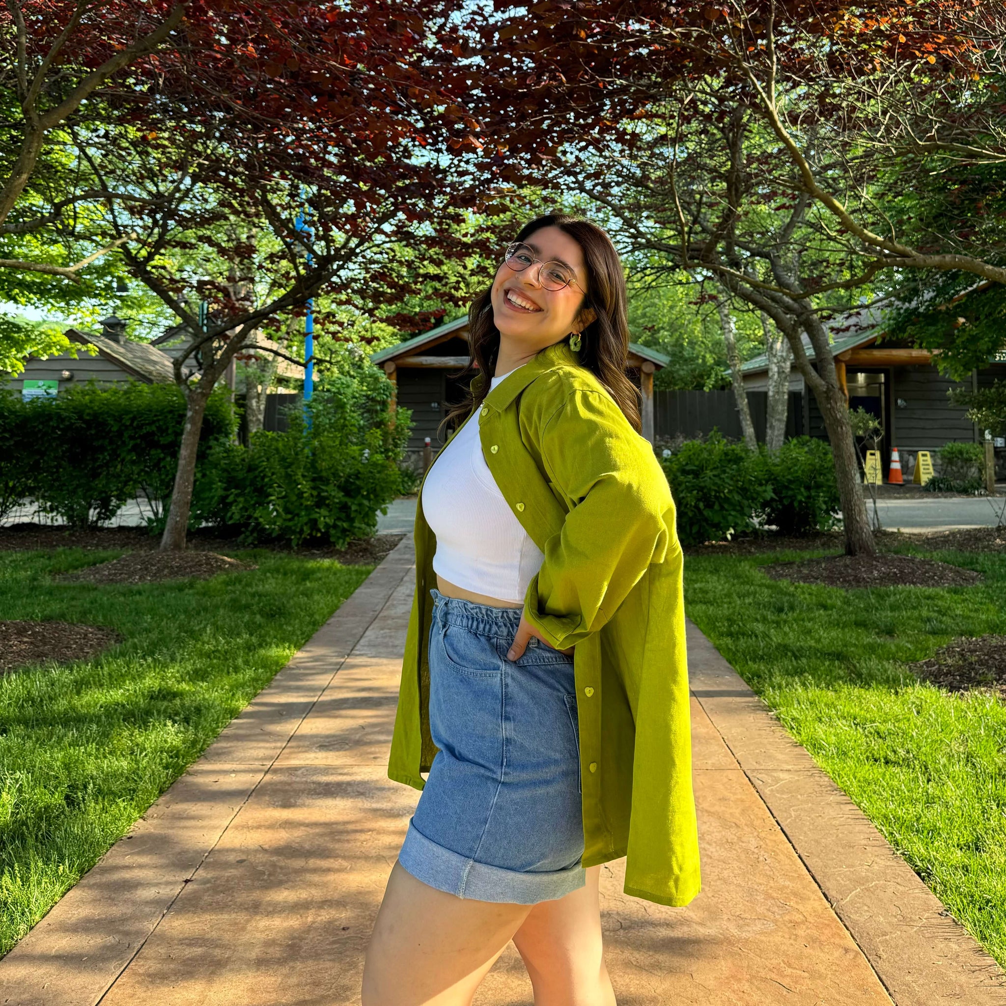 Linen Long-Sleeve Button-Up - Matcha